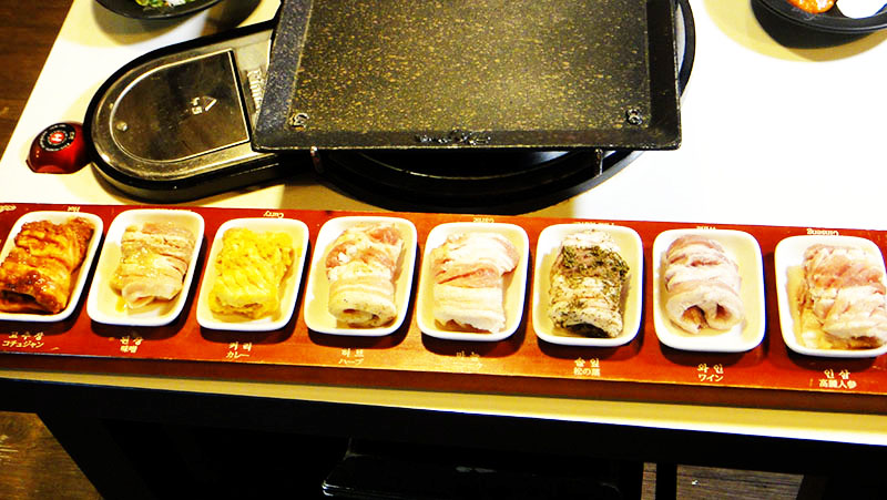 | 韓國超人氣烤肉八色五花肉,以人參、紅酒、松葉、大蒜、香草、咖哩、大醬、辣椒醬八種口味,給你口味由輕到重的烤肉好滋味! |