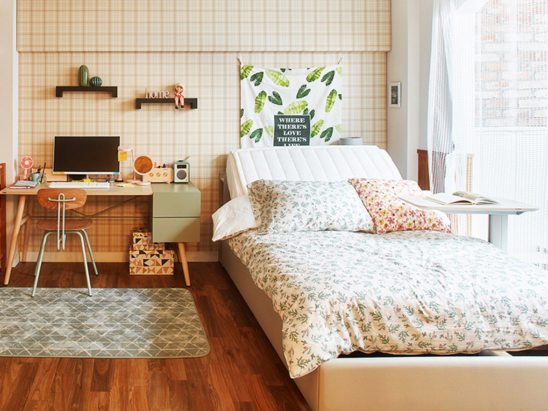 金秘書微笑,iloom為貼近企業小資女、個性認真、積極學習,以自然風格為佈置概念,透過簡約線條,暖色系、淺色木頭、溫暖蠟筆色、透明系、針織類佈置物,表現歡樂、輕鬆自在的居家風格。