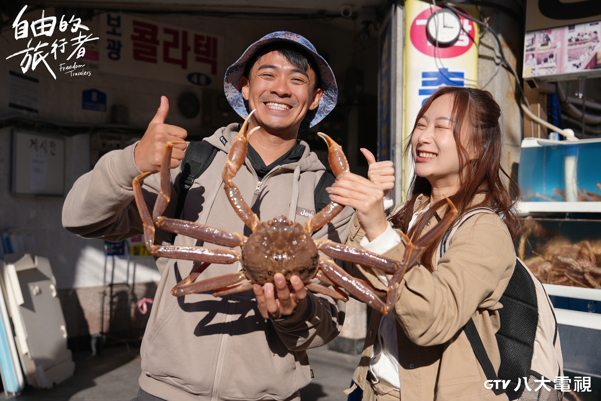 兩人也前往熱鬧的機張市場,看到熟悉的柿子水果攤,融融好奇詢問大家喜好「軟」柿還是「硬」柿?沒想到包括融融和工作人員一面倒選硬的脆口,身為在地人的咪蕾和水果攤老闆則愛軟Q口感,意外發現同樣水果,台韓的偏好也大不同。此外,市場中絕不能錯過的松葉蟹,由於價格隨季節浮動,外景拍攝時剛好遇上高價期間,一隻重約1公斤的松葉蟹,台幣近2千元,融融當下自掏腰包大方請客;料理後的蟹肉肥美鮮甜,融融、咪蕾大啖美食,直呼太幸福!