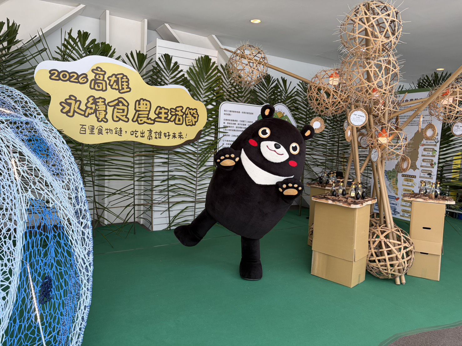 啟動儀式後,主展場規劃四大主題,涵蓋互動體驗區、農民老師入校教學、大學社會責任助攻永續食農,以及各局處推動成果。展場以山棕、竹子及水田抑草紙等自然素材打造展區空間,結合主題意象與感官體驗設計,營造沉浸式環境。秘書長表示,生活節不僅將農村帶進城市,也將農業的永續思維融入設計之中,令人印象深刻。