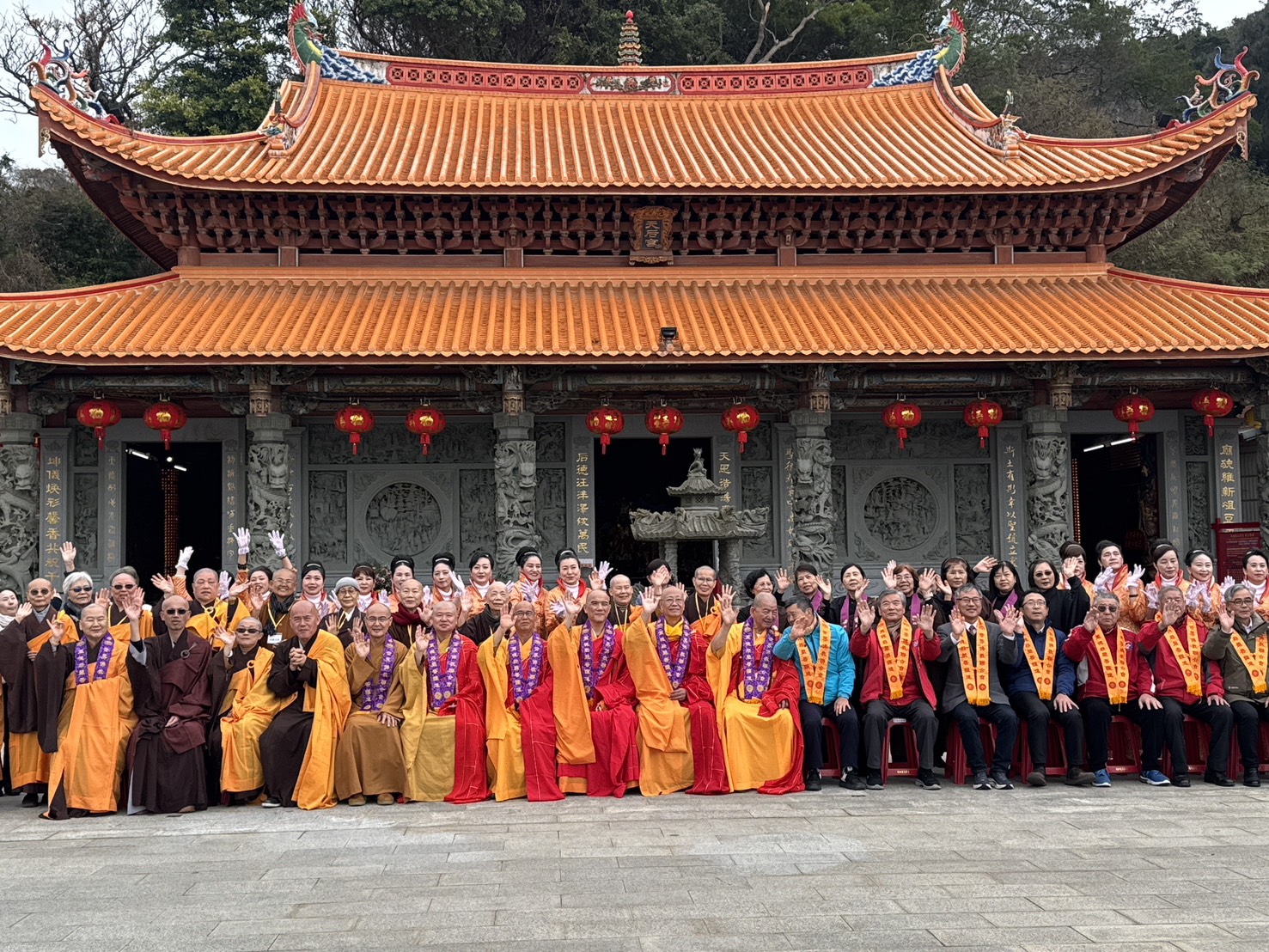 ▲全體僧俗四眾弟子合影。相片由主辦單位提供。台灣佛教界啟動十二場結合「祈安」與「實踐」的護國行動。「護國息災祈安大悲法會」展現佛教界對社會、地球與眾生的關懷行動力。