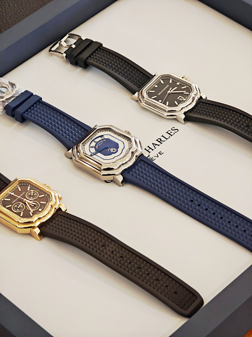 熟悉 Genta 大師的消費者,一定對於大師在錶殼、面盤設計上,顛覆傳統的絕代創舉,讓人過目難忘,Gerald Charles 身為大師創作生涯的最後一舞,特別由 17 世紀瑞士裔義大利建築師 FrancescoBorromini 的羅馬巴洛克建築中汲取靈感,將六角形、八角形與各類幾何元素融入錶殼設計。體現獨特的大師風骨,賦予 Gerald Charles 旗下表款,及優雅 × 運動 × 建築 × 精緻 的獨到風格,使其在高級鐘錶領域中別樹一格。同時位於 6 點鐘方向的標誌性「微笑曲線(smile)」更是 Genta 創作精神的標誌性象徵。Gerald Charles 台灣總代理-麥克林台灣有限公司,為了台灣消費者,能有一睹匯集大師一生創意精華的腕錶風采,特別選定中美鐘錶南京店,作為品牌進入台灣市場的第一間授權通路,店內主要展市系列,包括具標誌性的 Masterlink 與完整的 Maestro 系列,定能讓喜歡頂尖工藝腕錶的消費者,倍感驚嘆與欣賞。
